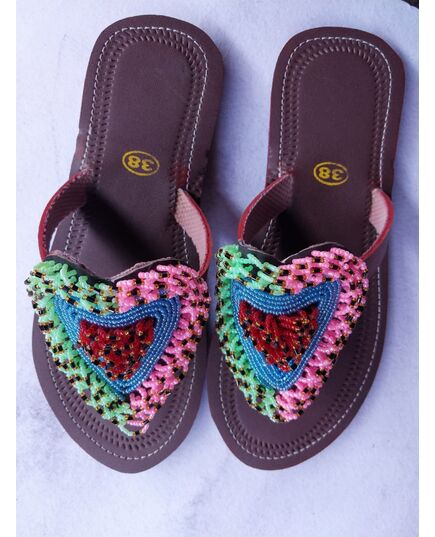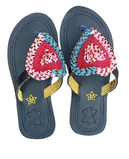 Embrace elegant simplicity with these handmade African sandals for women, crafted from genuine brown leather and adorned with striking monochrome beadwork. Featuring a signature teardrop bead pattern in pink, blue, green, and gold, this design balances cultural tradition with modern minimalist style. Ideal for casual days, cultural events, or making a subtle fashion statement.