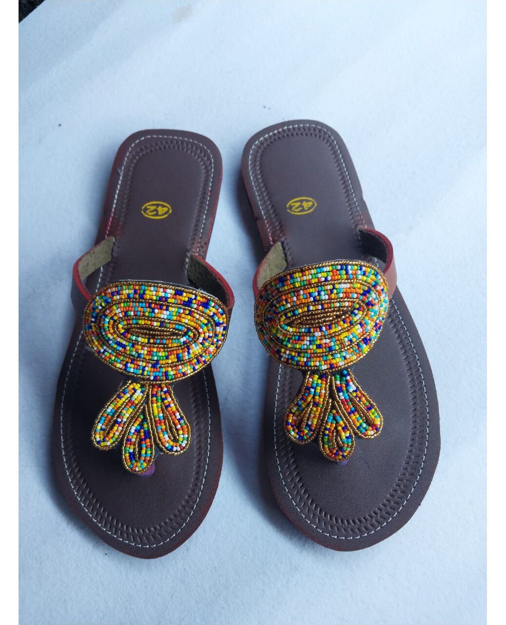 Add a bold and artistic touch to your wardrobe with these handcrafted African leather sandals for women, designed with vibrant multicolor beadwork and a unique teardrop pattern. Carefully made by skilled artisans, these sandals blend cultural expression with everyday comfort — making them ideal for both casual and festive occasions.
