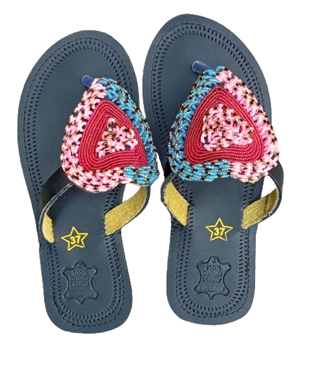 Embrace elegant simplicity with these handmade African sandals for women, crafted from genuine brown leather and adorned with striking monochrome beadwork. Featuring a signature teardrop bead pattern in pink, blue, green, and gold, this design balances cultural tradition with modern minimalist style. Ideal for casual days, cultural events, or making a subtle fashion statement.
