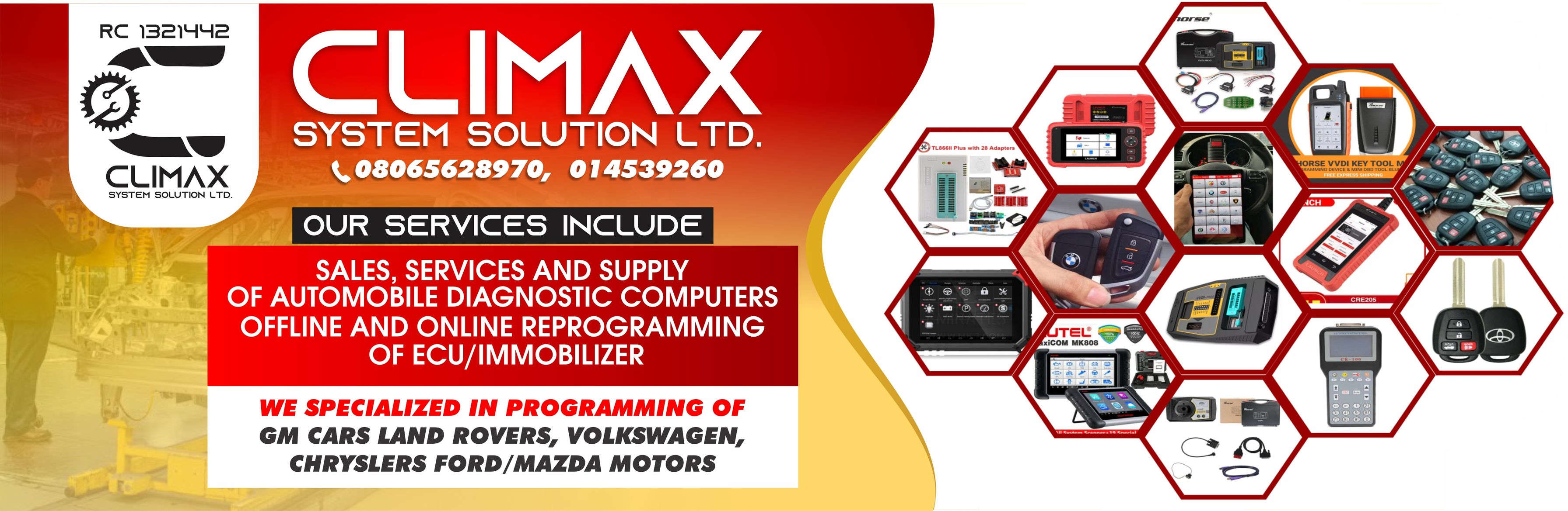 Sales, services and supply of automobile diagnostic computers offline and online reprogramming of ECU/Immobilizer.